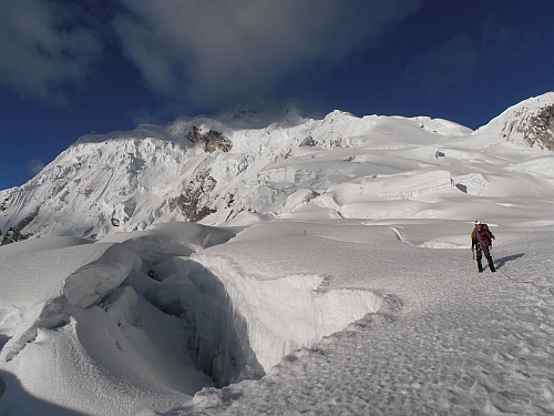 NICMÉNĚ mějte na paměti, že ledovce se časem dost mění a 5 let stará informace (fotka, cesta) už nemusí být dávno aktuální. Proto je nejlepší odchytnout někoho z mnoha horolezců (často Němci a Švýcaři), kteří se se v Huarazu pohybují, a zeptat se přímo jich.
