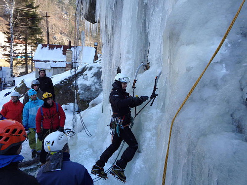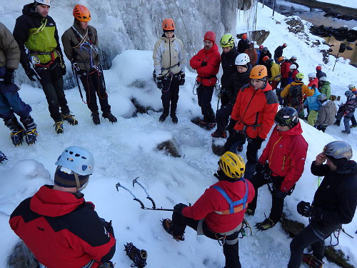V úvodu na prvním stanovišti byla probrána výstroj a výzbroj pro lezení v ledu a vlastní technika lezení. Na druhém stanovišti byly demonstrovány různé druhy šroubů do ledu a jejich vrtání. Účastníci si mohli na všechny předváděné činnosti vyzkoušet v praxi.