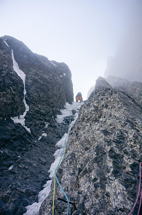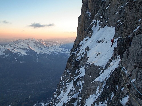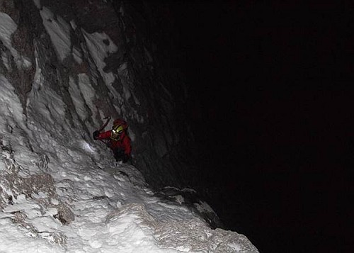 Potom už se rozednívá a víceméně na jeden zátah valíme k Hinterstoisserovu traverzu. Je to