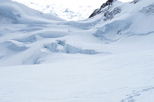 Ty fotky jsou opravdu z konce června. Já chápu, že guidi musí vodit, i když se podmínky netváří na 100%. Bezpečnost není u nich na prvním místě, podstatné jsou peníze! Vloni jsem po 16 hodinovém sněžení následující den v polovině srpna potkal pod Matterhornem 3 neúspěšné guidy s klientama. Vrátili se z 1/3 Hörnligradu. V domě horských vůdců v Zermattu mi řekli, že nebudou 14 dní vodit kvůli velkému množství sněhu! I za pokus je guid placený... P.S. Ten žebřík bych si vzal :-)