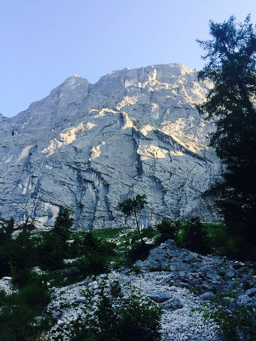 Ráno před pátou budíček u jezera Grundlsee a vyrážíme směrem podél potoka Zimnitz k impozatní jižní stěně. Po necelých dvou
