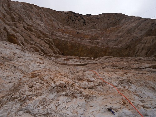 Tolik z pohledu kvantifikace. Viděno z druhého úhlu zážitkového lezení: Vzdušné lezení v obrovské střeše vysoko nad údolím jištěné skobami, z nichž dobrá je tak polovina, je něco velmi intenzivního a krajinově vděčného, inu Bellavista. Po pohodlném, ale trochu chladném bivaku následoval překvapivě alpinistický dolez klasickou Cassinovou cestou. Lezení maximálně v sedmém stupni, ale zato v teplotách kolem nuly, v místy poledovatělé skále zakončené vyledněnými komínky. Vzhledem k panujícím podmínkám přelezu lze výstup celkově 22 délek dlouhou linií označit za celkem vyrovnanou alpskou túru.