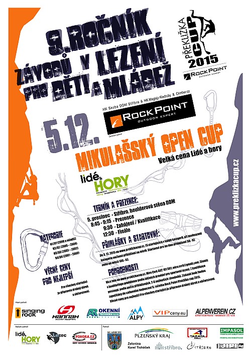 smallV soboru 5. prosince 2015, v Boulderclubu DDM Stříbro, proběhne již 12. ročník  Mikulášského open cupu - velké ceny časopisu Lidé a Hory ( www.lideahory.cz ).