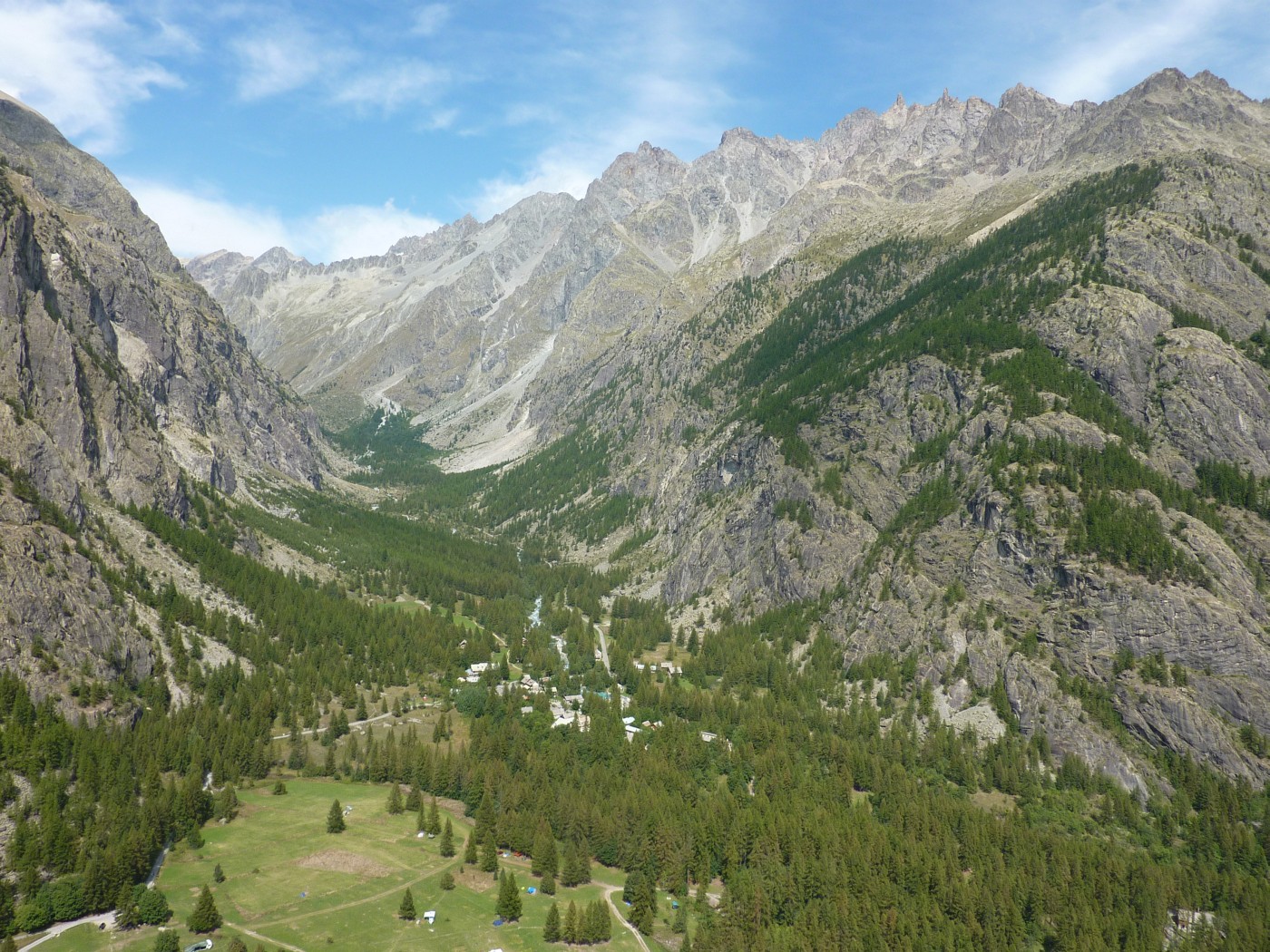 Z Ústí do cíle je to cirka 1200 km. Cesta vede přes Mnichov, Miláno a Briancon. Na kemp jsme dojeli ráno kolem půl osmé. Do osmi čekáme na kempaře. Pak rychle postavit stan a do skal. Kemp v podstatě zabírá většinu místa v údolí na soutoku dvou horských říček.