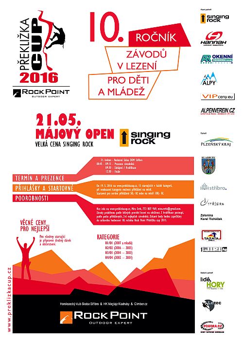 Desátý ročník Rock Point Překližka Cupu v lezecké všestrannosti mládeže pokračoval letošním druhým závodem Singing Rock Májovým openem.