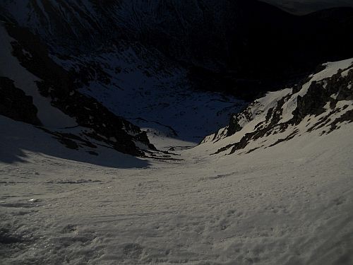 Nevzpomínám si, co se mi zdálo první noc. Druhý den jsem začal pociťovat sílu Západních Tater. Sníh byl všude udusaný a ufoukaný. Zapíchnout šlo do něj jen hroty maček, člověk se moc nebořil. Šlo se nám oběma s Tomášem poměrně dobře. Centrální žlab Salatína byl jedno ledové koryto. Přes Salatín, Skriňarky, Pachola jsme došli do Baníkovského sedla.