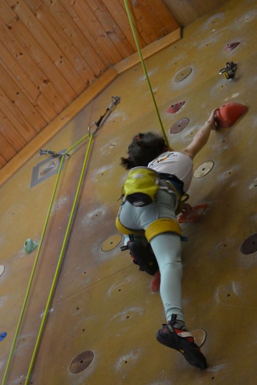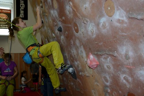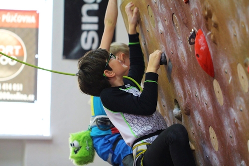 Nejstarší kategorie U14 měla připravené opravdu zapeklité cesty. První se lezlo v kolmém profilu, kde bylo potřeba nejprve zvládnout několik technických kroků s odšlapem, na které navazovaly lišty a konečná stropová pasáž s TOPem. Celé se to nepovedlo zvládnout nikomu. Druhou cestu měla kategorie U14 společnou s kategorií U12. A přesto, že si navíc museli poradit se cvakáním, podařilo se ji TOPovat těm prvním nejlepším holkám i klukům. Poslední a nejtěžší cesta celého závodu vedla přes břicho do dlouhého stropu, kam se však nepovedlo dolézt nikomu.