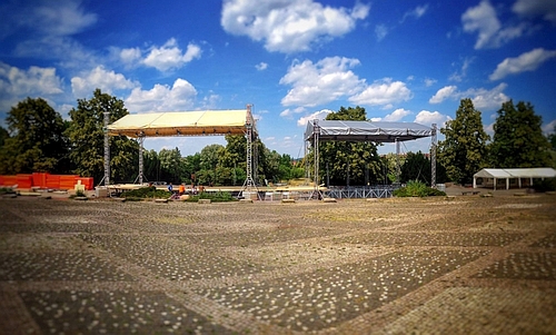 Staví se tam dvě velké střechy, které budou zakrývat obří stage s šesti boulder profily. Mezi nimi bude velká LED obrazovka, na které se v sobotu má promítat nejen připravovaný on-line přenos.