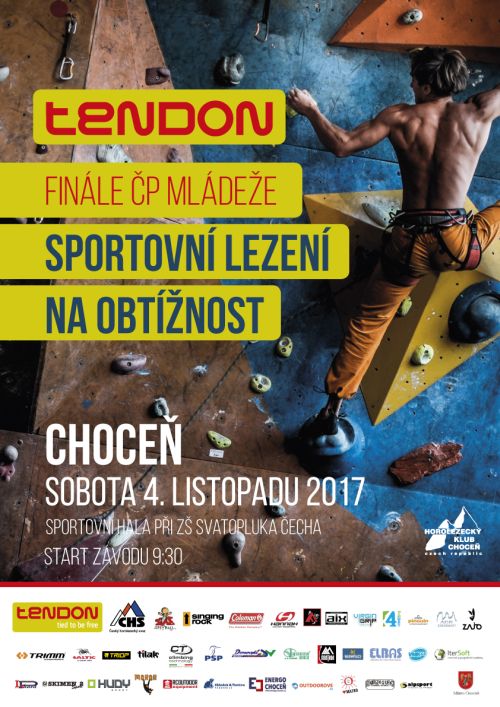Tendon finále Českého poháru mládeže v lezení na obtížnost bude 4.11.2017 v Chocni.