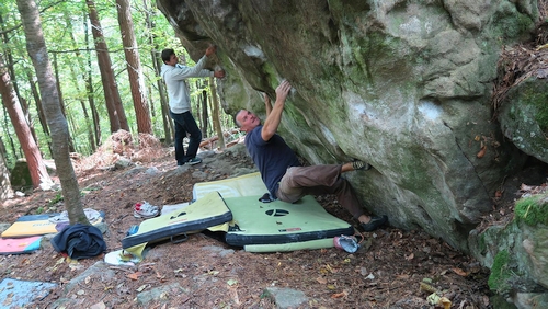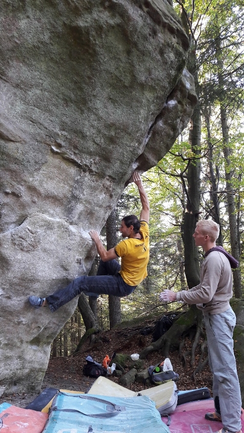 Na kopci oproti sa podarilo Stepanovi, Magnusovi a mne zopakovať  krásny boulder od Stana Klima Kikimora za 7C, tam sa ale upravila klasa na 7B+ a Stepan s Magnusom pridali aj predlzenie zľava Babadook 7C+ a upravili klasu na 7C.