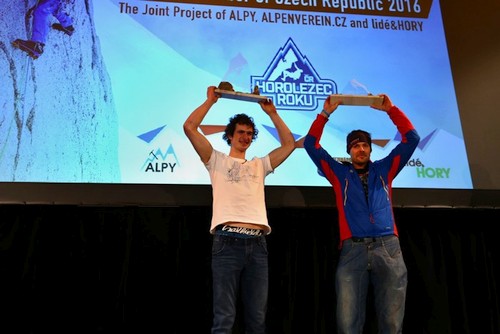 Poté se pódium zaplnilo krásnými trofejemi z kamenictví Vorel, aby byly předány výhercům soutěží Výstupy Alpenverein 2017 a Horolezec roku 2017. Titul Horolezec roku získal již po osmé v řadě a zcela zaslouženě Adam Ondra, který měl skvělou sezónu, v níž mimo jiné zdolal volným stylem stěnu Dawn Wall, vytvořil a přelezl nejtěžší cestu na světě (Silence, 9c) a vybojoval i dvě stříbrné medaile – jednu na ME a druhou v závodě SP. Na stupních vítězů v soutěži Horolezec roku ho doprovodili hrdinové z Gasherbrumu I – Mára HolečekZdeněk Hák. Porotu soutěže tvoří oba organizátoři soutěže: společnost ALPY a časopis lidé&HORY, dále časopis Everest a internetové portály Lezec.cz a Horyinfo.cz.