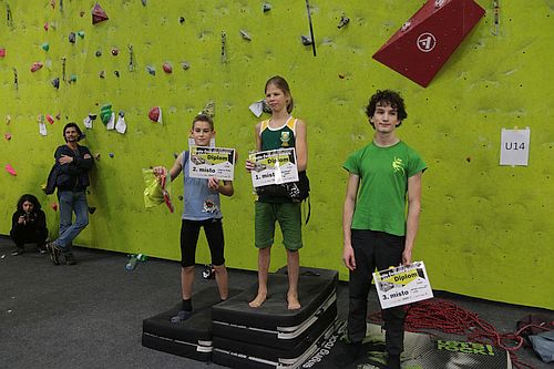 V odpoledních hodinách pak bylo k vidění spousta napínavých pokusů ve finálových bojích. Topovat dokázali pouze Markéta Janošová a Adam Adamovský oba v kategorii U14, a to v cestě o obtížnosti 9+. V kategorii U12 se lezla devítka a pro kategorii U10 byla postavena cesta o obtížnosti 9-.