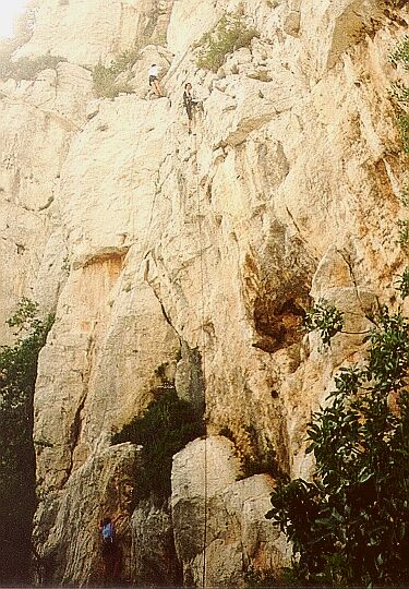 Koupaní v Lágu nebylo nic moc a tak jsme pokračovali do Francie. Ve Francii jsme nejprve zamířili do Nice, kde jsme se vykoupali a pak jsme jeli do La Turbie, kde jsou nádherné vápencové skály s úžasným výhledem na Monako. Na parkovišti byli již zaparkované dvě slovenská auta, ve kterých přijely kluci a holky ze Slovenska. Byli mezi nima i bratři Repčíci. Večer šli všichni do Monaka a totálně se tam spili. Když přišli pořád nás budili, zvláště jedna holka, až se Janina naštvala a zakřičela na naše slovenské bratry: "Tak už ji někdo vošukejte ať už toho nechá!" Nechala nás. V Monaku je docela tvrdá klasifikace a je to všechno trochu ojetý ale jinak nádhera. Zde se dařilo zase především Janinině, která zde dala mnoho pěkných onsightů. Já jsem dal nejvíc 6b OS, ale i tak jsem se docela utahal.