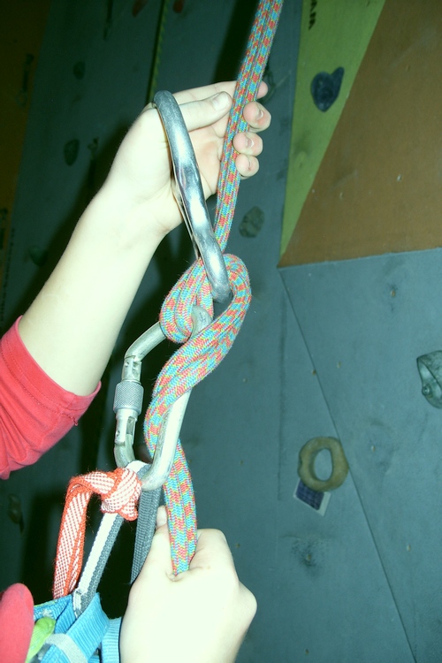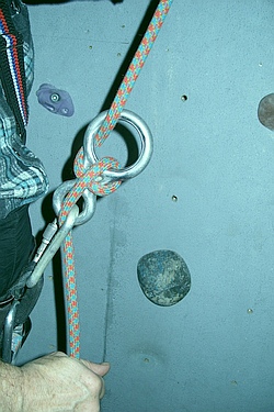 Tu je ovšem více možností založení (u dvojkyblíku 4) a proto je vždy nutno nejvýhodnější odzkoušet. Při jištění pochopitelně založit tak, aby lano propadalo do kolmé karabiny.