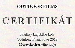Firma Outdoor Films s. r. o., pořadatel právě probíhajícího XVI. Mezinárodního festivalu outdoorových filmů, obdržela ocenění finalista Firma roku Moravskoslezského kraje 2018. Představitelé firmy to oznámili v tiskové zprávě.