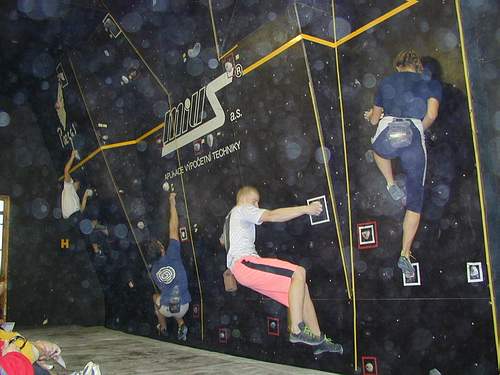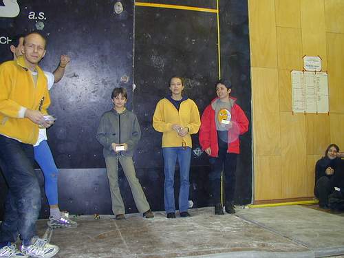 NEDOMYSLEL jsem ovšem jak poznám kdo je kdo, když boulderisti nenosej na zádech čísla jako třeba hokéjisi. Takže ač mám E-adresy některých závodníků nevím kam mám které fotky poslat (až na pár lidí co znám). Hloupé že? Druhý rozměr tohoto "bonusu" tkví v tom, že když jsem kámošovi co tam byl poslal pár fotek, div mě neukamenoval, že to stahoval třičtvrtě hodiny, čímž pádem nemohl nic jinýho dělat a ještě se prej nedoplatí... Proto byl tento projet pozastaven. Nicméně všechny fotografie mám zálohované a pokud máte zájem ozvěte se a zkusíme s tím něco udělat.