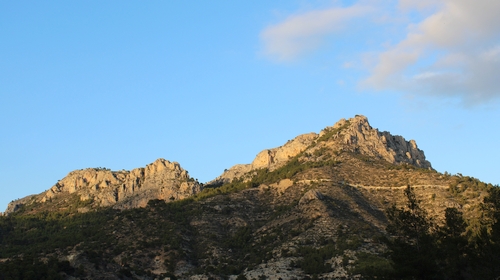 Mascarat bych nazval skálou, která „překáží“. Vlastně všem cestám, které tudy prochází. A tak je masiv provrtán tunely silničními, železničními i dálničními. S parkováním je to tu trochu složitější, hlavní silnice již neumožňují odbočit na staré mosty, a tak nejlepší je asi v zátočině na souřadnicích 38.6342844N, 0.0063678E, odkud se podél potoka dostanete ke skalám (5-10 minut). Vzhledem k opuštěnosti auta bych toho ale v něm moc nenechával. Pro lepší bezpečí je možné zaparkovat až v Mascaratu a dojít pěšky. Na svém úpatí vytváří masiv malý kaňon, ve kterém vedou jednodélkové sportovky. Je zde zhruba desítka šestek a v pěkné převislé části desítka sedmiček (bohužel občas po sekaných chytech). Podle mého názoru jsou ale hlavním lákadlem alpinistické vícedélky, mezi nimi pak čtyřdélkové 6a Aía Aurora a pětidélkové 6a+ G.E.D.E. Helmu a vklíněnce rozhodně s sebou!