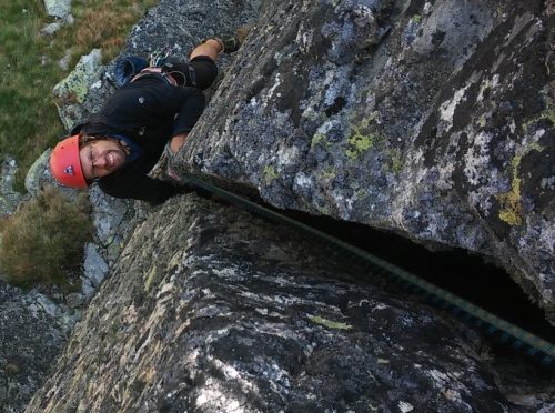 Nastoupili jsme a opravdu. Největší friend spárou jen tak projel a náš jediný velký kamelot padl hned ze začátku. Raději jsme tedy vzali za vděk vedlejší koutovou spárkou a pilíř přelezli tudy. Vznikly tak čtyři délky pěkného lezení v docela dobré skále s obtížností 5+ / 6–: