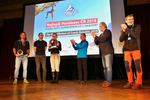 Peter ještě zůstal na scéně, aby společně s organizátory MFA předal ocenění Horolezec roku 2018. Komise sestavená ze společnosti ALPY a zástupců odborných medií z oblasti alpinismu (časopisy lidé&HORY a Everest, webové portály Lezec.cz a Horyinfo.cz) udělila stejně jako ve všech dosavadních ročnících soutěže (vyhlašována od roku 2010) nejvíce bodů Adamu Ondrovi. Nejlepší lezec planety byl v době vyhlašování na úspěšném lezeckém tripu v USA, a tak za něj cenu převzali rodiče. Plaketu za druhé a třetí místo si osobně převzali Mára Holeček a vycházející hvězda českého sportovního lezení Jakub Konečný.
