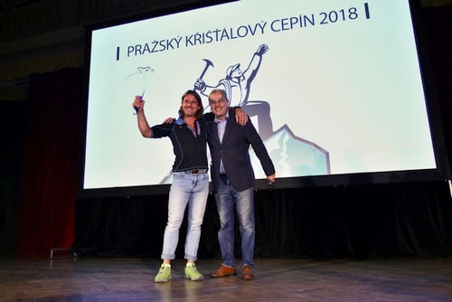 Stříbrný medailista soutěže Horolezec roku 2018 se z pódia ale jen tak nedostal. S trochou nadsázky lze říct, že zbytek neděle už v podstatě patřil Márovi Holečkovi. Nejprve si od legendárního P. Habelera a R. Schauera převzal krásnou trofej Pražský křišťálový cepín za přínos k rozvoji alpinismu. Potom rozjel svou pověstnou živelnou show – letos se stejným názvem, jaký má jeho nová kniha Dotknout se nebe. S pověstnou dávkou vtipu a nadhledu povyprávěl o posledních parádních prvovýstupech alpským stylem.