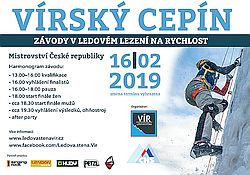 Závod Adrex Ice Run v Liberci byl v termínu 23.2.2019 zrušen, a tudíž se Mistrovství republiky v ledolezení na rychlost přesouvá na tuto sobotu 16.2.2019 do Víru na Moravě na Vírský cepín 2019.
