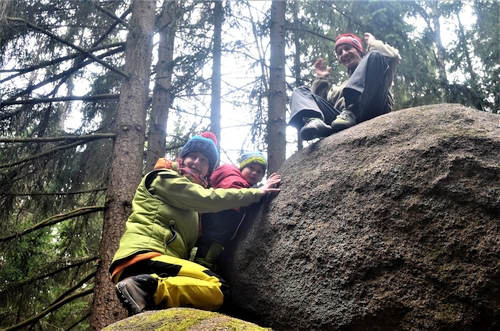 Děti si lezly svoje jedničky, dvoječky…, stavěly bunkříky, hráli s přinesenými hračkami. Dospělí si kromě přelezů odnášeli z lesa kilogramy odpadků, les opravdu prokoukl.