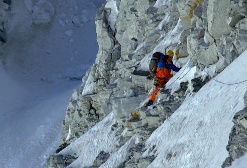 V deset hodin jsme minuli hlavní vrchol, přičemž zastávka měla jen pár minut pro několik záběrů na kameru. Nucených pár zmrzlých úsměvů, několik vypuštěných slov, které okamžitě vzal vítr někam do ztracena. Měl jsem úplně necitlivé ruce z držení kamery a ani Hook se netvářil, že má chuť déle otálet. Lesk a bída horolezcova, nebo-li úspěch bez ovací. Skutečná radost čeká až dole, kam také ještě nemusíme nikdy dolézt. Však raději nepředjímat smutné konce.