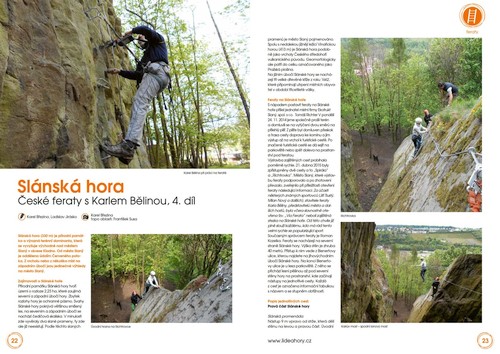 Chybět nebude ani poutavé vyprávění Máry Holečka o této úspěšné expedici. Tématem čísla jsou Čechy velmi oblíbené a takřka domácí Vysoké Tatry, z alpských regionů se představuje Wolfgangsee, údolí Val Resia a také Tyrolsko, respektive jeho šest nejkrásnějších dálkových tras. Seriál „České feraty s Karlem Bělinou“ tentokrát zavítá na Slánskou horu.