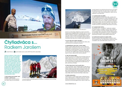 Konec prázdnin vám zpříjemní čtvrté číslo, které je nadupané rozhovory s osobnostmi, jakými je Alberto Inurrategi, Radek Jaroš, legendární horský nosič Jaroslav Švorc nebo Zdeněk „Háček“ Hák, který předvedl s Márou Holečkem další velký zářez českého horolezectví – tentokrát na nepálské sedmitisícovce Chamlang.