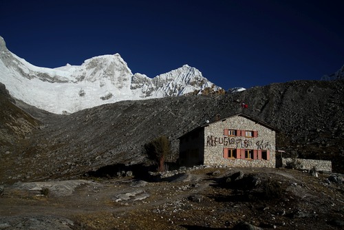 Náš cíl po výběru z možných variant nakonec ukázal svůj prst na východní stěnu Huandoy Norte. Jednalo se o volnou linii středem hory, vedoucí přímou od ledovce, až k vrcholu. Jednoduše krásná a přírodní linka, jejíž lákadlo hodláme využít. Před startem jsem pečlivě sledoval několik dní denní rytmus ve stěně, včetně detailů kudy polezeme. Takže dobře vím, v jakých časech nejčastěji padají kameny i led, kterým se musíme ze zištných důvodů vyhnout. Dále běh slunce i vítr, který čechrá sněhový vlas hory. Posloužil mi k tomu teleobjektiv postavený na stativu uprostřed terasy refugia Peru, který dokázal přes soustavu lup přiblížit i blechu na měsíci.  Samotná bouda se nachází přímo pod majestátním amfiteátrem tří vrcholků Huandoye a Pisca. Takže naprosto strategické místo s parádním výhledem. Nicméně stejným objektivem, kterým jsem se díval minulé dny, nás teď jistě filmuje a sleduje „Galas“, neboli Tomáš Galásek. Je to můj letitý kámoš, skvělý filmař a paparaci na mnoha mých předchozích výpravách. Má jednu oproti nám nespornou výhodu. Když mu začne být zima a přestane ho bavit filmařina, zaleze dovnitř, dá si pivo, teplou sprchu a půjde spát na palandu. Nicméně propásnout záběry také nesmí, jinak nevznikne film, kvůli kterému jel až sem na konec světa s námi. Přistihl jsem se, že mu vlastně ani nezávidím. Vždyť on jako první ví, respektive vidí, co se s námi děje a nelze se z toho myšlenkami vyvázat. Čili kus obav a dramatu na něj do údolí přenášíme, aniž by měl možnost cokoliv s tím dělat.