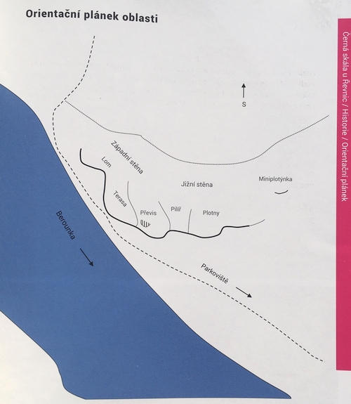 V pokračování zmíněného hřebene se nachází ještě dvě poměrně významné skalní oblasti (Jindřichova skála a Mrtnická skála), které jsou sice již mimo hranice přírodního parku Hřebeny, ale v průvodci jsou, stejně jako Černá skála nedaleko Řevnic na levém břehu Berounky, popsány také.