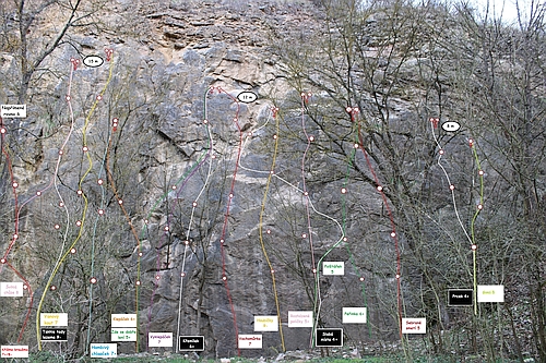 Možná by se hodil popis nových cest v malém sektoru zcela vpravo v Alkazaru u Srbska v Českém krasu.