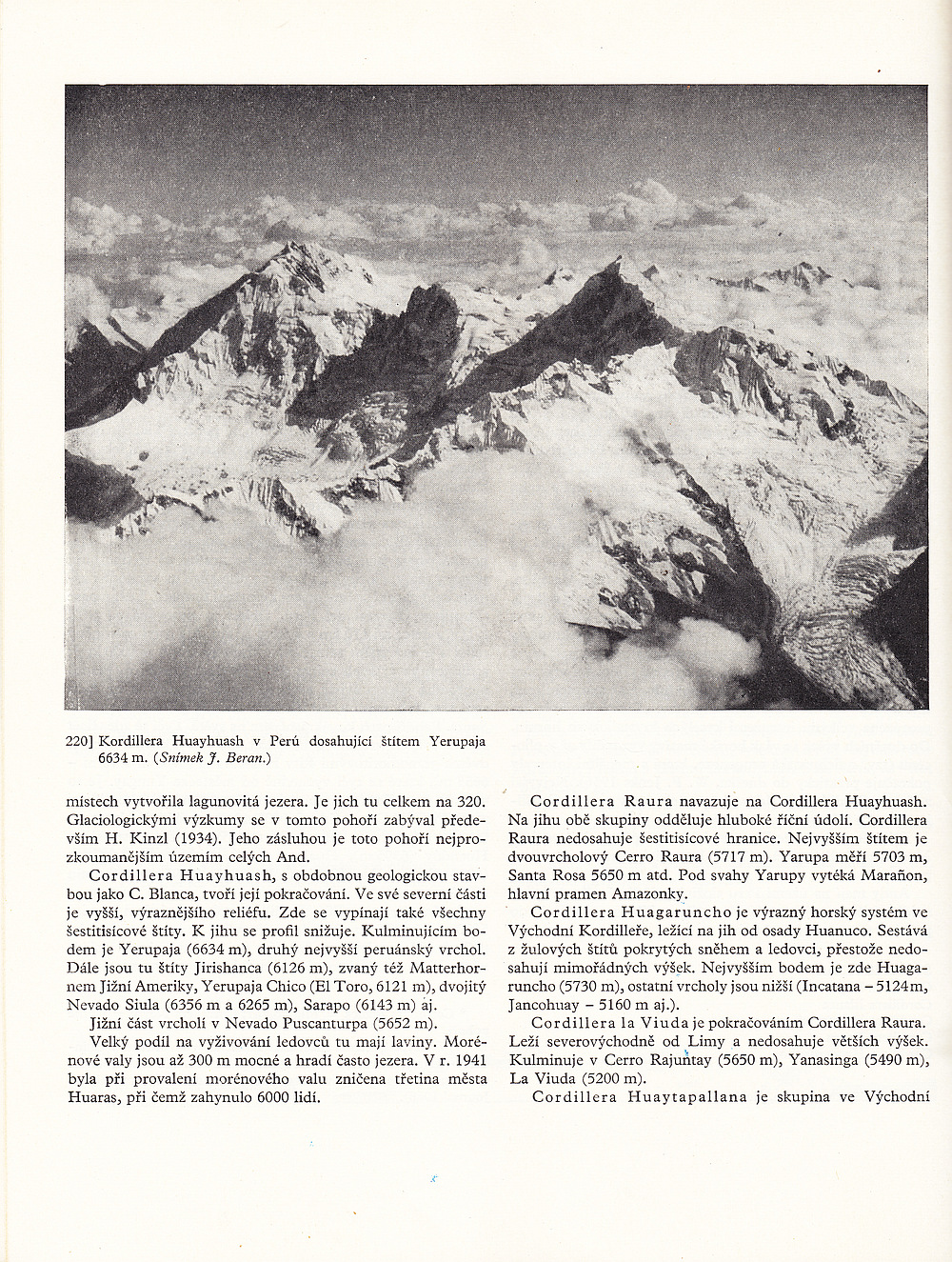 Je to neuvěřitelné, ale celých 50 let jsem si pamatoval, že na straně 282 vlevo dole je zmínka o lavině, která v roce 1941 protrhla pod Huascaránem morénový val a podobně jako v roce 1970 zničila velkou část Huarázu, při čemž tehdy zahynulo 6000 lidí.
