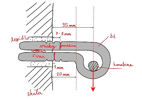 na Ammerthaler Wand.  Podle svědectví si 32 letý lezec odsedl asi dva až tři metry pod vrcholem této asi 13 m dlouhé cesty.  Po zatížení se zalepený slaňovací bh., který trčel mírně ven ( jak je vidět z nákresu) ze skály a tudíž byl více namáhaný na ohyb, zlomil takže horolezec spadl z výšky asi deseti metrů na jeho 42 letou jističku.  Padající způsobil jističce vážné zranění, zatímco sám utrpěl mírné zranění.