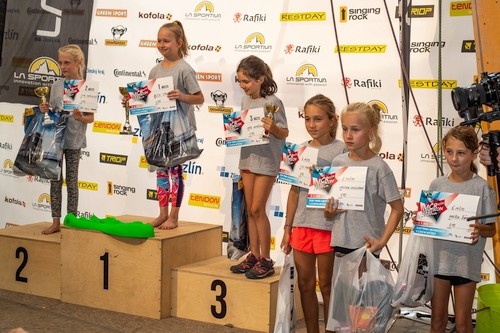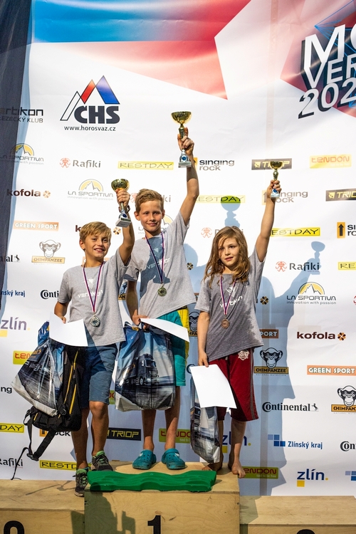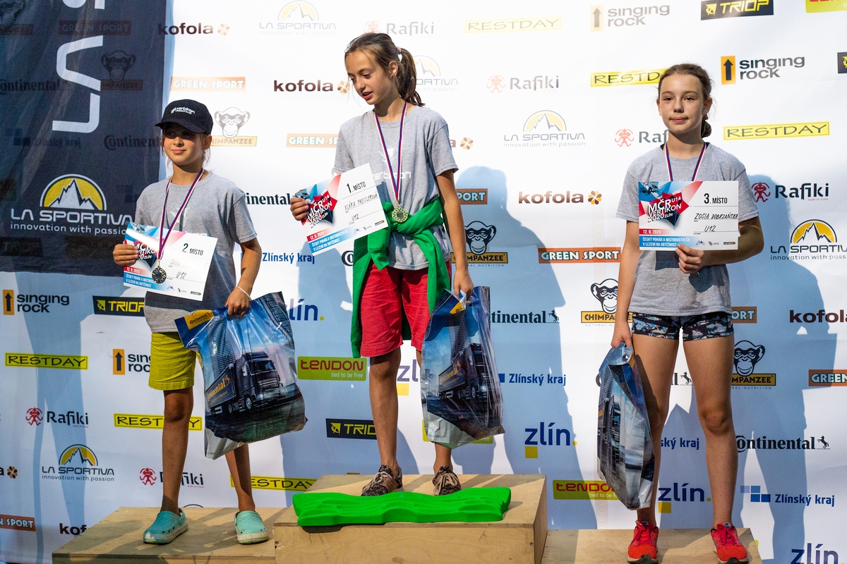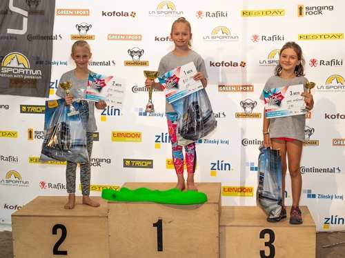 Jen tak pro pořádek, obtížnost pro kategorii U10 byla 7b, pro U12 7c+ a pro U14 8a. Vzhledem k postupnému gradování obtížnosti to však neznamenalo, že by cesta vzhůru nad druhou expresku byla zapovězena pro většinu finalistů. Podařilo se, že z celkem 52 finalistů bylo pouze 7 shodných výsledků, za což opět můžeme poděkovat ostravsko-pražskému stavěčskému týmu.