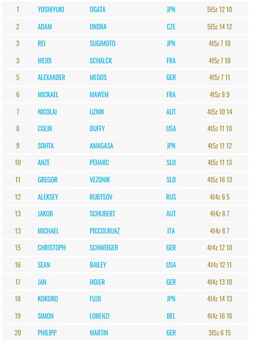 Zde jsou výsledky 20 nejlepších mužů, kteří postoupili do semifinále: