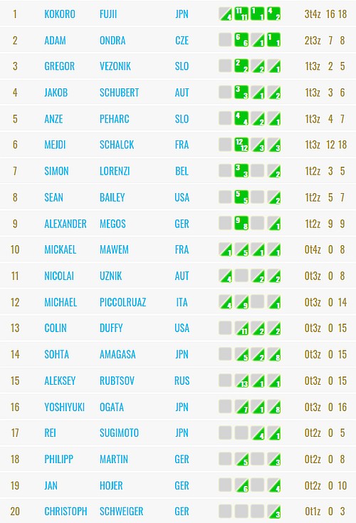 Průběžné výsledky najdete na www.ifsc-climbing.org zde: