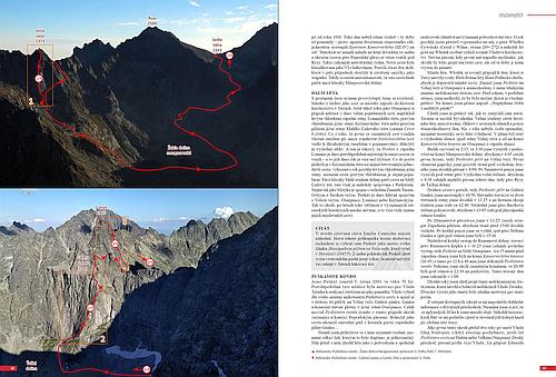 A dál? Dan Podraský tě vezme do stěny asijského El Capitana a provede tě nekonečnými spárami až na vrchol Russian Tower. Mimochodem – kluci téměř kilometrovou stěnou prostoupili za 11,5 hodiny, a tedy rychleji než Lynn Hill při svém pokusu v roce 1994. Při čtení povídky Prokopa Kudlika si možná budeš tu a tam říkat, zdali autor nepsal o tobě – obzvláště, máš-li v oblibě „kvaky“.  A Pavel Paloncý tomu dá na závěr trochu švuňk a představí ti scénu horských rychovýstupů, při nichž začínáš lehkým poklusem v tričku a trenkách a končíš v rukavicích, s mačkami na nohou a srdcem na pokraji exploze.