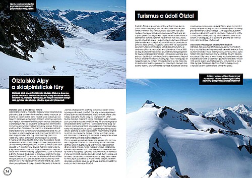 Velký znalec obou uvedených oblastí, nadšený skialpinista a jeden z dlouholetých externích spolupracovníků časopisu lidé&HORY, Josef Essl z Innsbrucku, připravil pro české milovníky zimních túr rozsáhlý soubor nabídek různě obtížných skialpových túr v Ötztálských Alpách, největší východoalpské ledovcové oblasti, a v sousední jihotyrolské oblasti Passeiertal. Na 16 stranách jsou obě uvedené oblasti představeny nejen jako historicky a kulturně zajímavé regiony. Z některých významných středisek, mezi která patří např. Obergurgl, chaty Langtalereckhütte nebo Vernagthütte a celé údolí Passeiertal, jsou popsány atraktivní zimní túry a výstupy na lyžích pro začátečníky i pro kondičně zdatné skialpinisty. Celé téma na stranách 73 až 88 je postaveno na autorových krásných a velmi zdařilých fotografiích z vrcholových partií obou horských skupin.