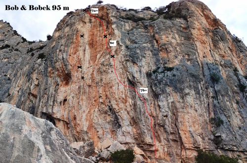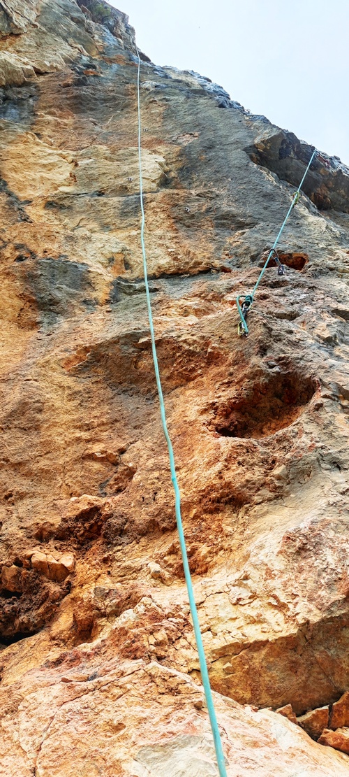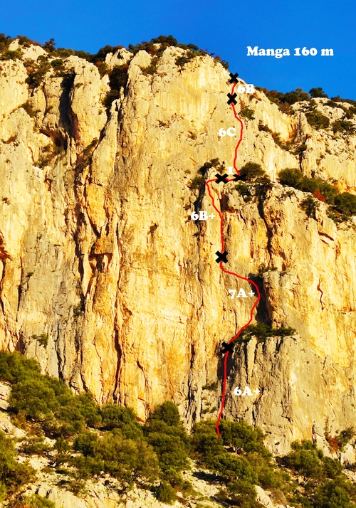Další pěkný směr jsme našli v oblasti, kterou jsme vrtali 4 roky zpět. Prodloužením cesty MANGA. Druhá délka v kuse byla nakonec 7a+, ale ty další 6b+ a 6c už jsou lehčí. Díky blízkosti nýtů to vyleze i někdo, kdo má max 6b 😉 Super skála, trošku ostrá, otočená na jih.