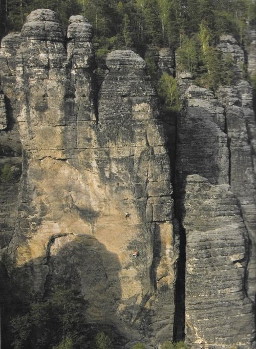 Tou dobou jsem přestával do Saska jezdit. Za totáče jsme tam byli skoro každý týden. To se dalo ještě spát v bivacích a na skalním divadle. Talweg na Höllenhunda z fotky bylo moje maximum, hlavně silově.