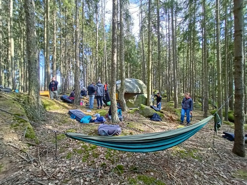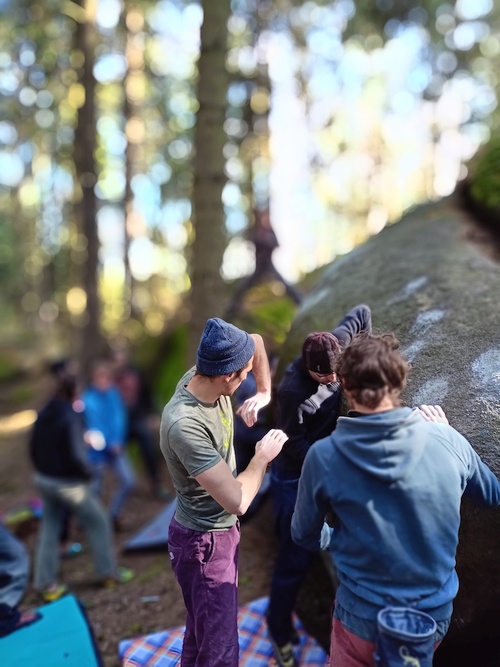 Petrohradské Padání 2022 proběhlo v druhé polovině dubna na zejména nových boulderech v těsné blízkosti našeho poslední dobou stálého zázemí, chatičkového areálu Sklárna u Žihle. Bouldery byly očištěny již na rok 2020, ale představte si (možná jste to nevěděli), ale přišel vir, který zamořil celý „MIR“ a bylo. Tedy vlastně nebylo. Letos se 150 rozesmátých lidiček v lese ztratilo jako nic. V pátek podvečer sledovali, jak stopy z magnézia narušují stále silnější potůčky vody, v sobotu užívali nádherného počasí s poměrně solidní boulderistickou podmínkou – ve stínu kolem deseti, na slunci mimo les docela pařák. Večer se ochladilo a v boji o teplo vzniklo několik strategií. Oheň, tanec, alkohol (no fuj!). Někteří (a bylo jich dost) se oblékli. A byli i tací, kteří využili 100 W jiného těla. Taková květinová generace. Punk is not dead! A v neděli přišlo upozornění, že kdo nedal všechno do lezení v sobotu, prohloupil. Pršelo, pršelo, pršelo.