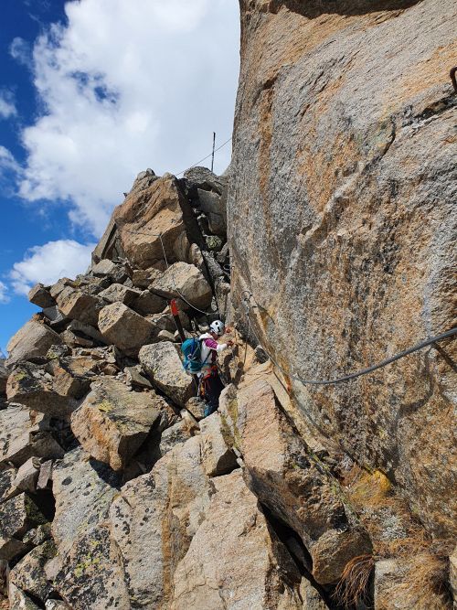Skalní pasáž při sestupu na Monterosa Gletscher.