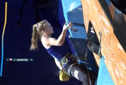 Eliška Adamovská skončila včera ve finále Světového poháru v lezení na obtížnost ve skotském Edinburghu na 8. místě. Vyhrála Japonka Mori Ai, které stejně jako před týdnem v Koperu odsunula donedávna dominantní Slovinku Janju Ganbret na 2. místo, 3. byla Korejka Chaehyun Seo. V mužích vyhrál Američan Jesse Grupper, 2. byl Slovinec Luka Potocar, 3. Brit Toby Roberts.