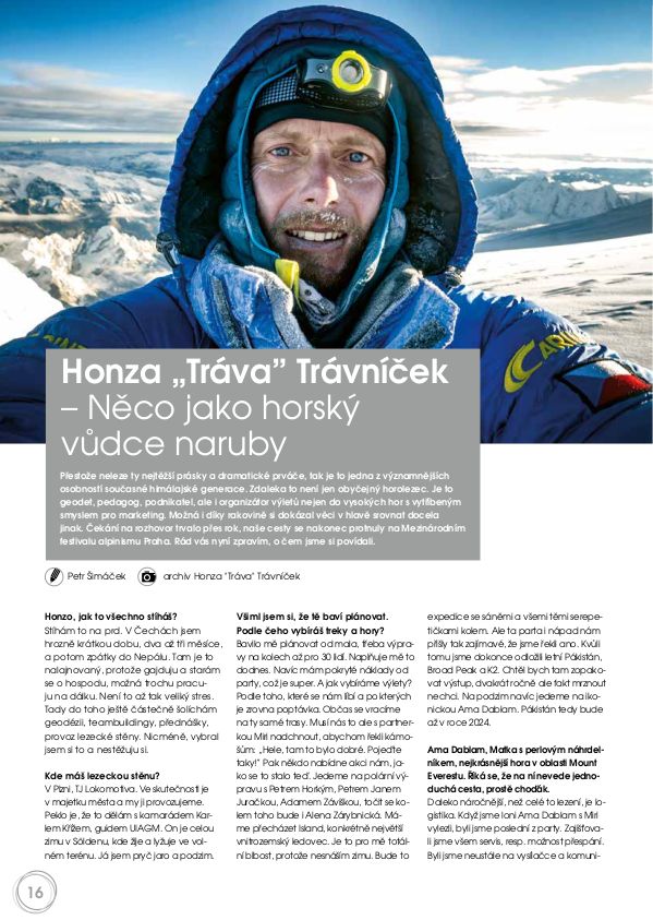 Přestože neleze ty nejtěžší prásky a dramatické prváče, tak je to jedna z významnějších osobností současné himálajské generace. Zdaleka to není jen obyčejný horolezec. Je to geodet, pedagog, podnikatel, ale i organizátor výletů nejen do vysokých hor s vytříbeným smyslem pro marketing. Možná i díky rakovině si dokázal věci v hlavě srovnat docela jinak. Mnoho námětů na vaše vlastní úvahy.
