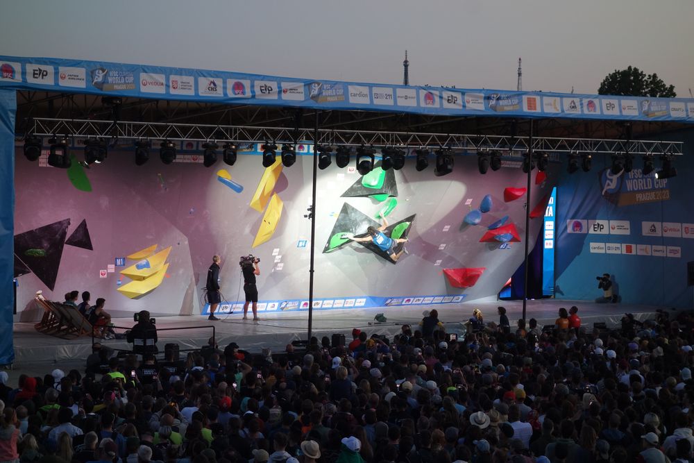 Na 5000 diváků sledovalo dle IFSC finále mužů SP v boulderingu v Praze