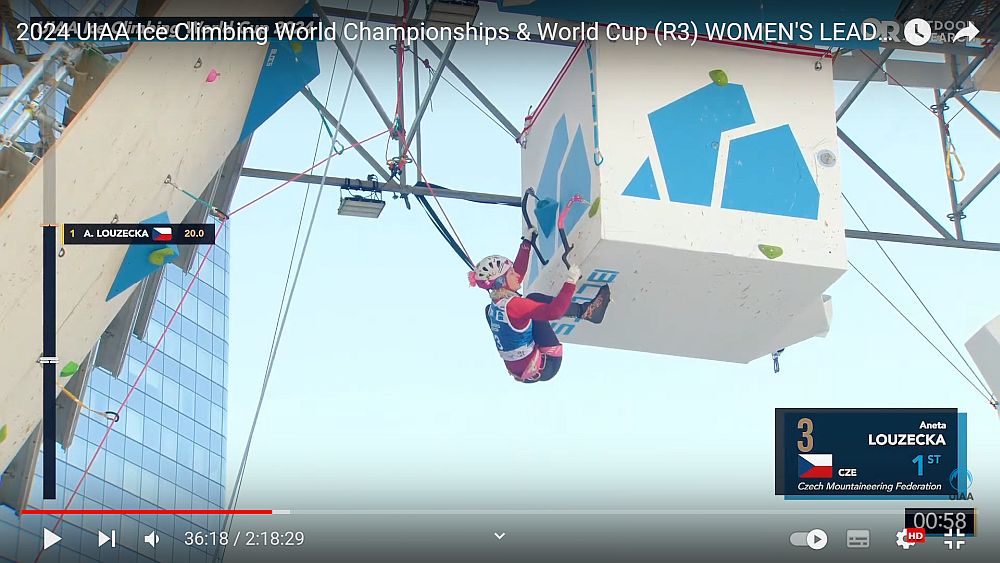 Aneta Loužecká v semifinálové cestě na mistrovství světa v ledolezení na obtížnost 2024