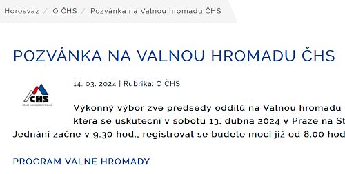 horosvaz.cz: Pozvánka na Valnou hromadu ČHS