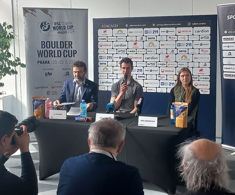 Tiskovka se věnovala také letošnímu závodu Světového poháru v boulderingu v Praze, který se chystá v září na Letné. Zde mají startovat jak Adam, tak Eliška, kteří se na závod těší. Novináři se v této souvislosti dozvěděli, že už se prodávají vstupenky a také že v současné době probíhá nábor pomocného pořadatelského personálu.
