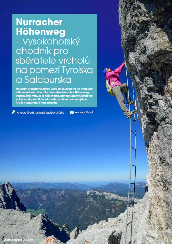 O dálkové horské cesty je v posledních letech opravdu velký zájem. Naši bavorští spolupracovníci nás zavádí tentokráte do horské oblasti Loferer Steinberge na vysokohorský chodník, který je označován jako chodník pro sběratele vrcholů. Na své si na této dlouhé jednodenní trase přijdou i vyznavači zajištěných cest. O Nurracher Höhenweg více na str. 42-46.